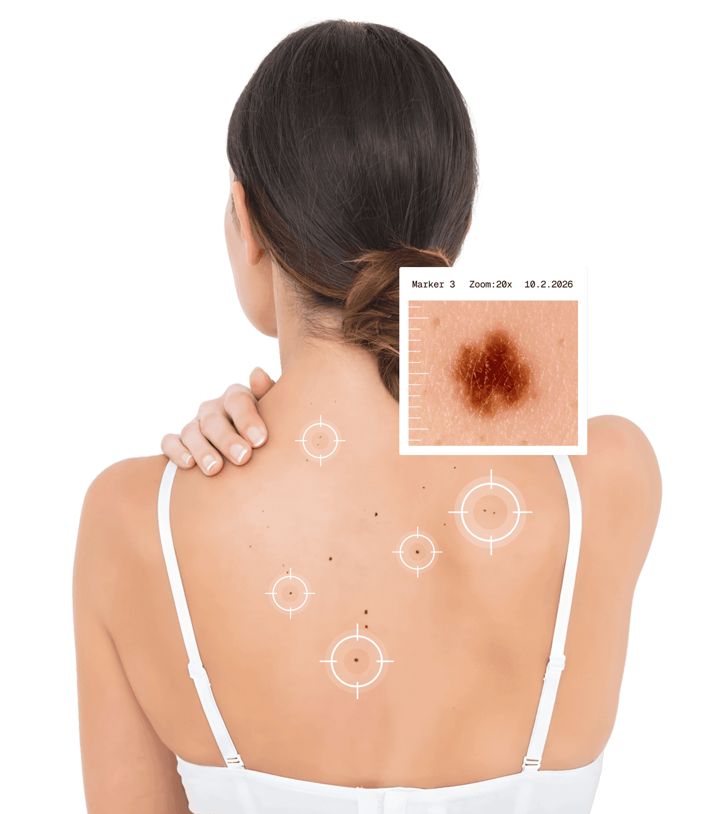 Náš systém zachytí nové znamienka a zmeny už od 1 mm. Práve opakované vyšetrenia umožňujú sledovať rýchlosť zmien a odhaliť riziko včas